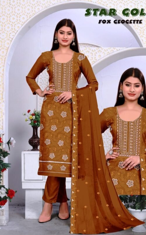 Fellora Unstitched dress material Suit Georgette Fabric STAR GOLD