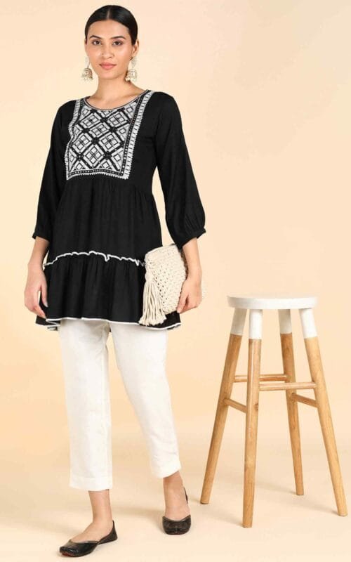 Black Cotton Kurti Top
