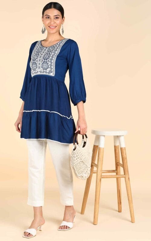 Blue Cotton Kurti Top