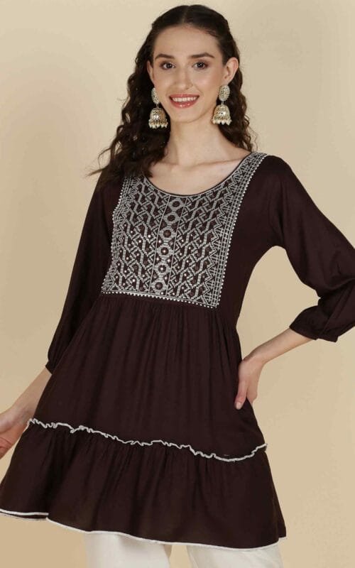 Brown Cotton Kurti Top