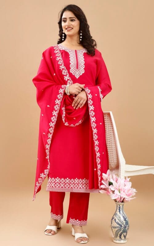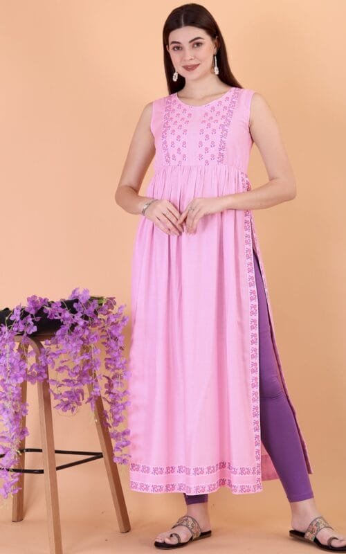 Embroidered Full Length Cotton Women’s Kurti Pink