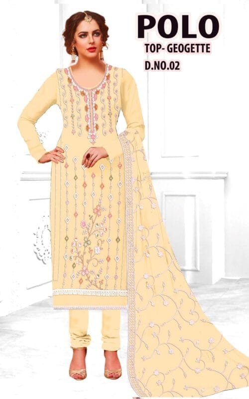 Fellora Unstitched dress material Suit Georgette Fabric STAR GOLD