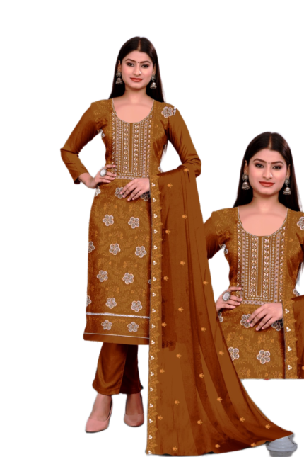 FELLORA-Unstitched dress material Suit Georgette Fabric STAR GOLD